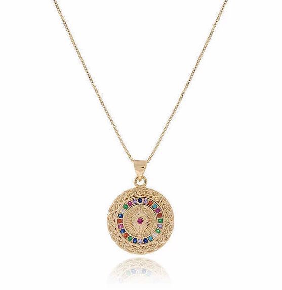 | Colar Bussola com Detalhes em Zirconias Coloridas Banhado em Ouro 18k 45cm |