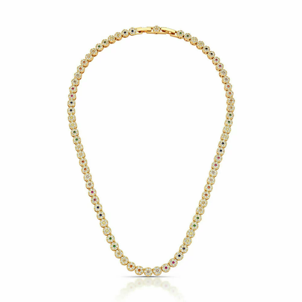 **Colar Riviera Oval Colors 4mm com Zircônias Banhado em Ouro 18K - Fecho Gaveta 40cm + Extensor**